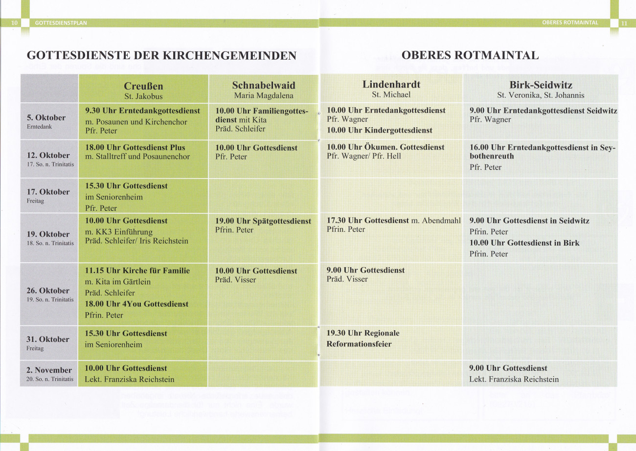 Unsere Gottesdienste im Oktober